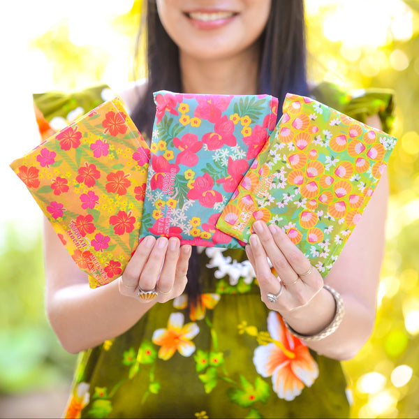 About the design: Our Vintage collection was inspired by my longtime love for vintage clothing, especially muʻumuʻu. This design features hibiscus flowers and lei hilo (twisted lei).